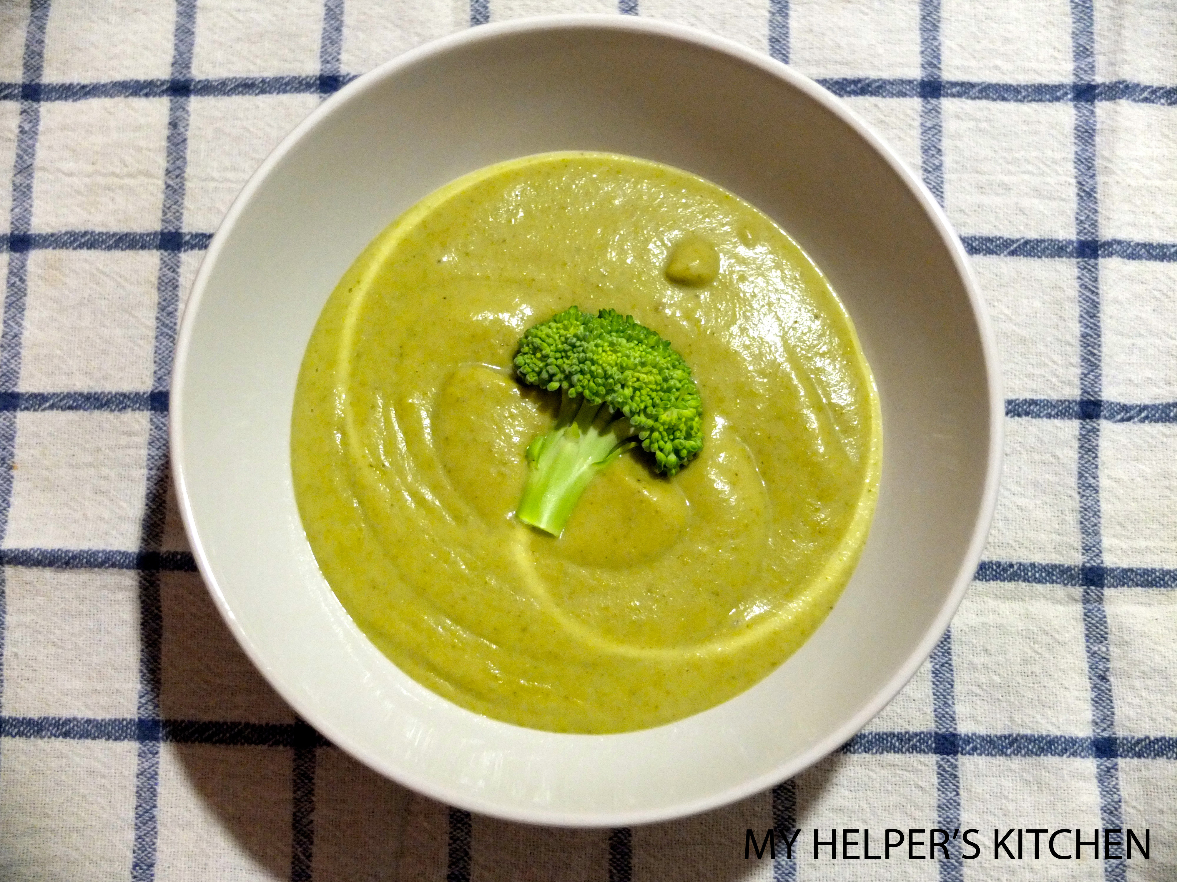 Side note: You can save a couple of broccoli flowers that you cut in half to set on the soup for presentation.